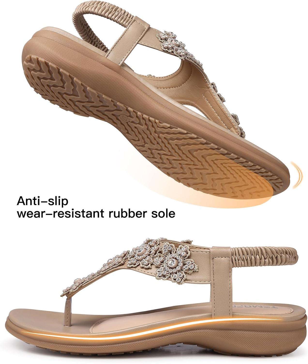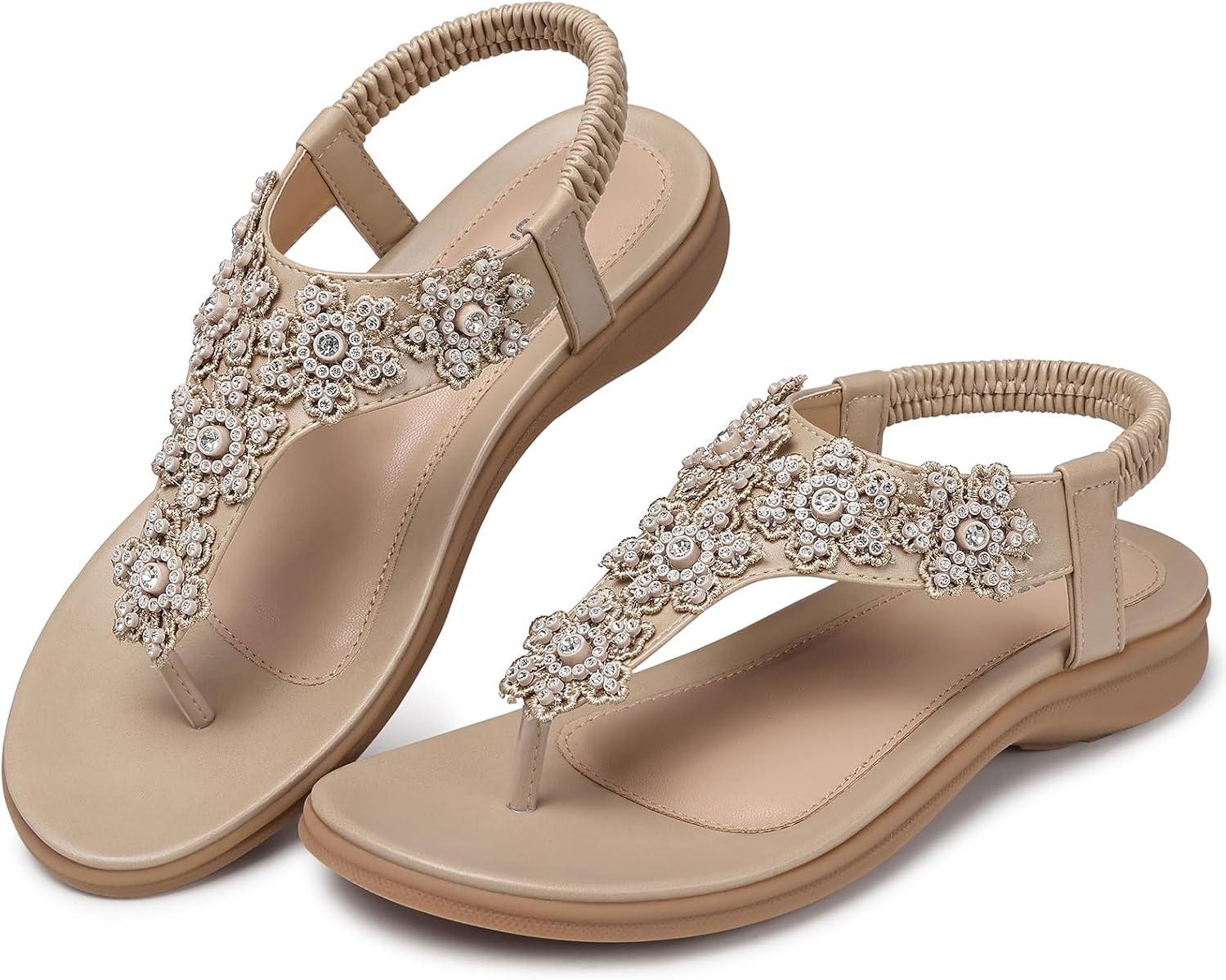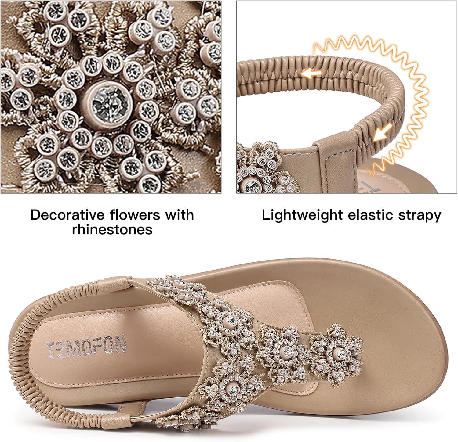 TEMOFON Sandals for Women Flat Dressy Summer Flower Sandals with Ankle Strap Comfortable Casual Walking Flat Sandals Size 5-11(28-apricot)