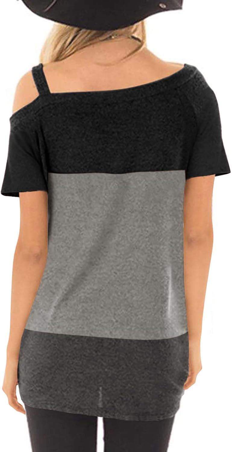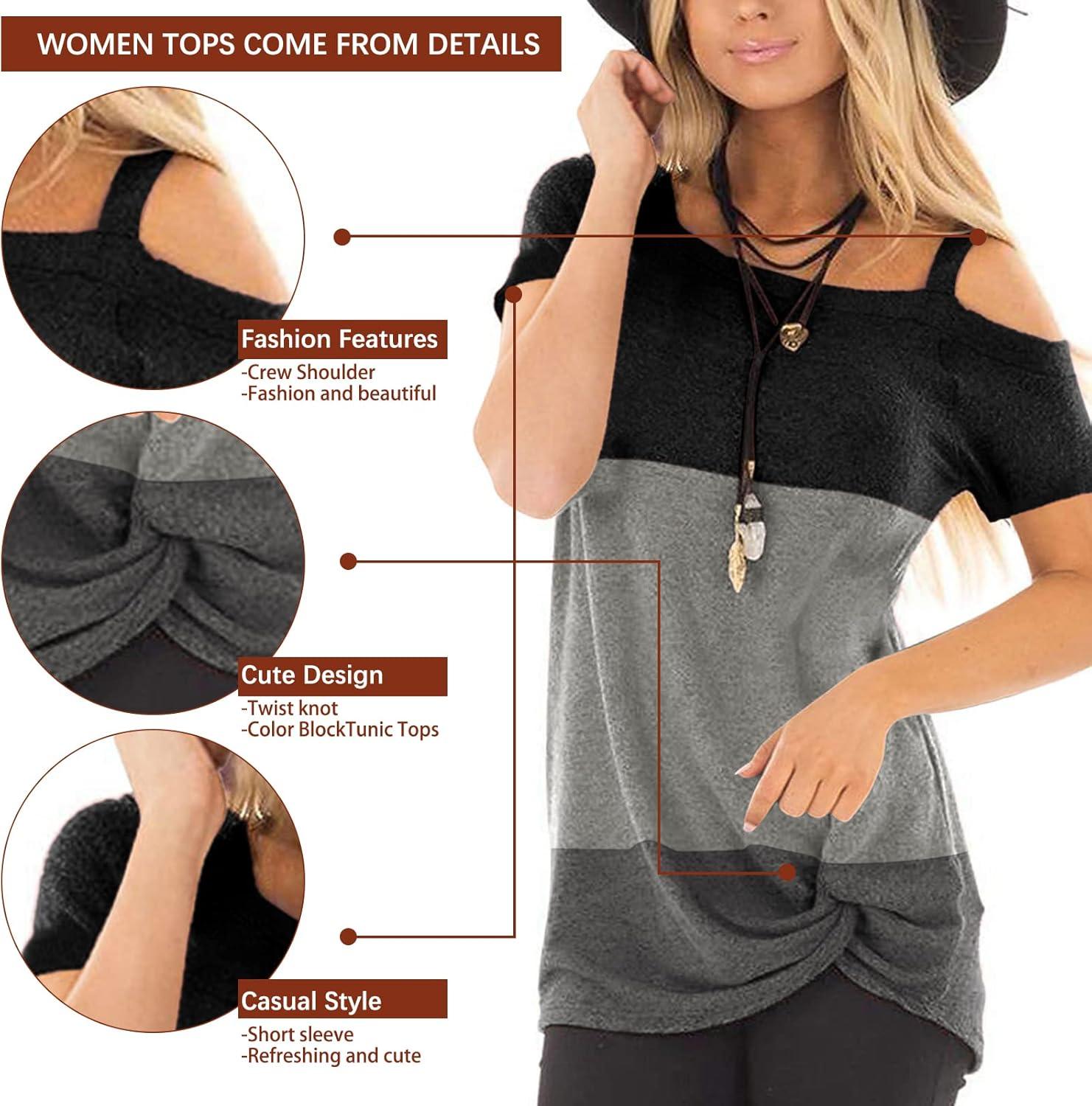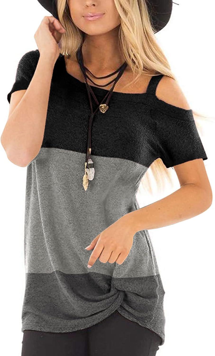 TEMOFON Women Cold Shoulder Tops: Summer Short Sleeve Shirts Casual Twist Knot Blouse T-Shirt S-2XL(152-black Grey)