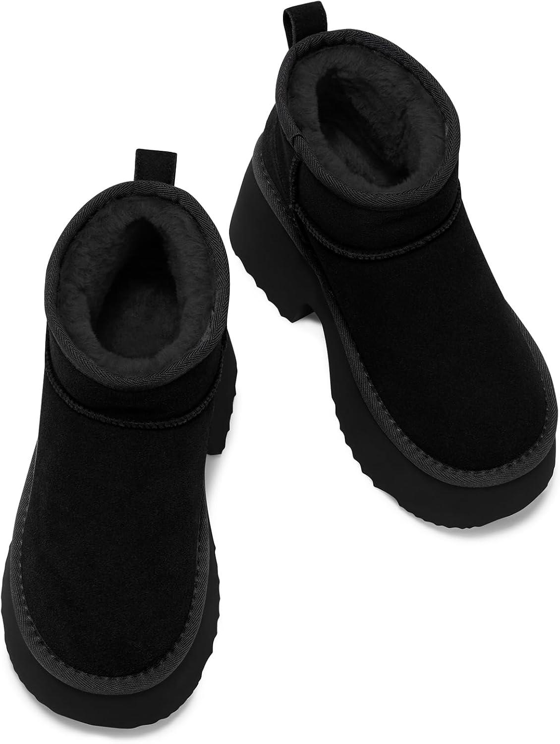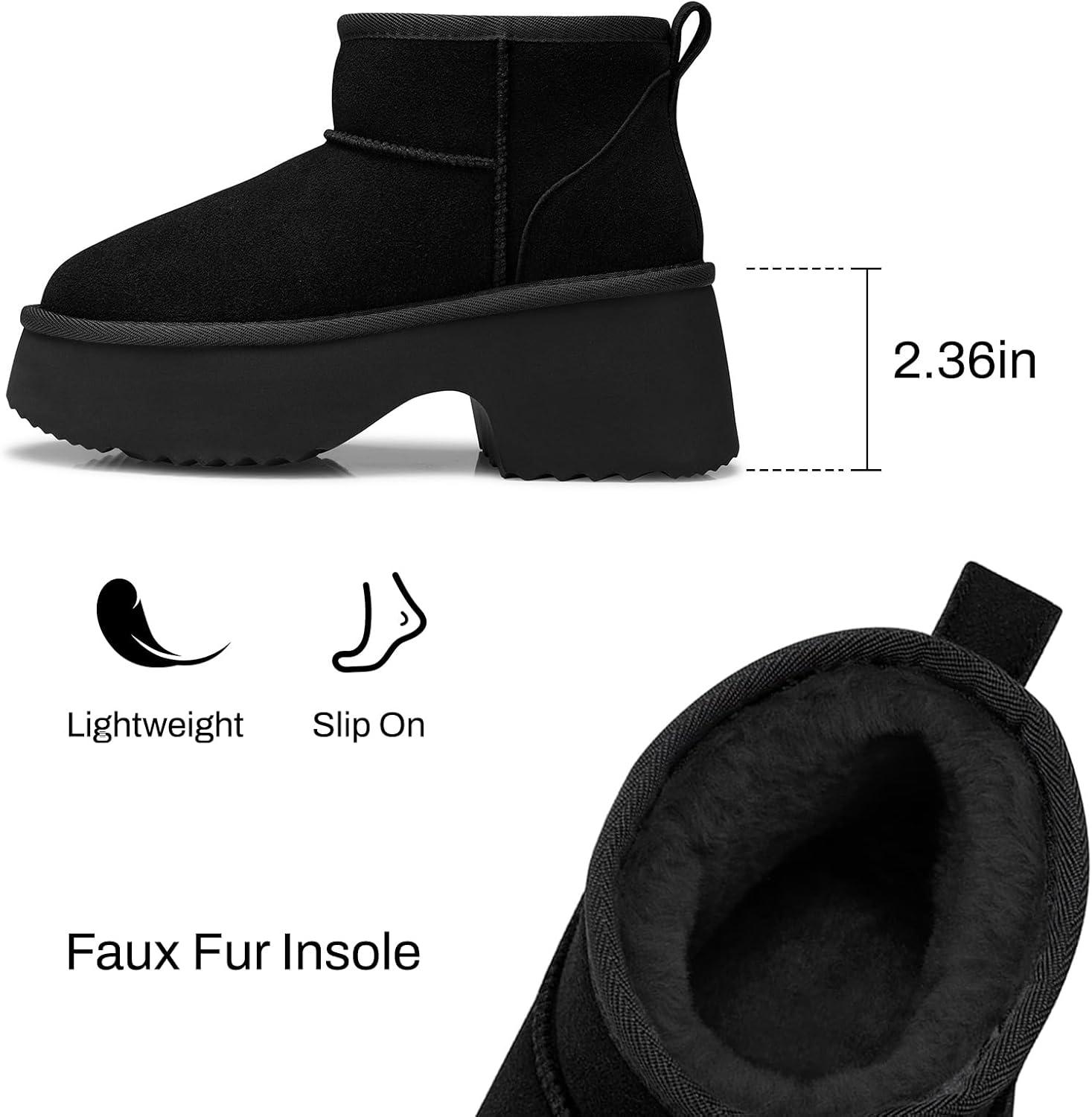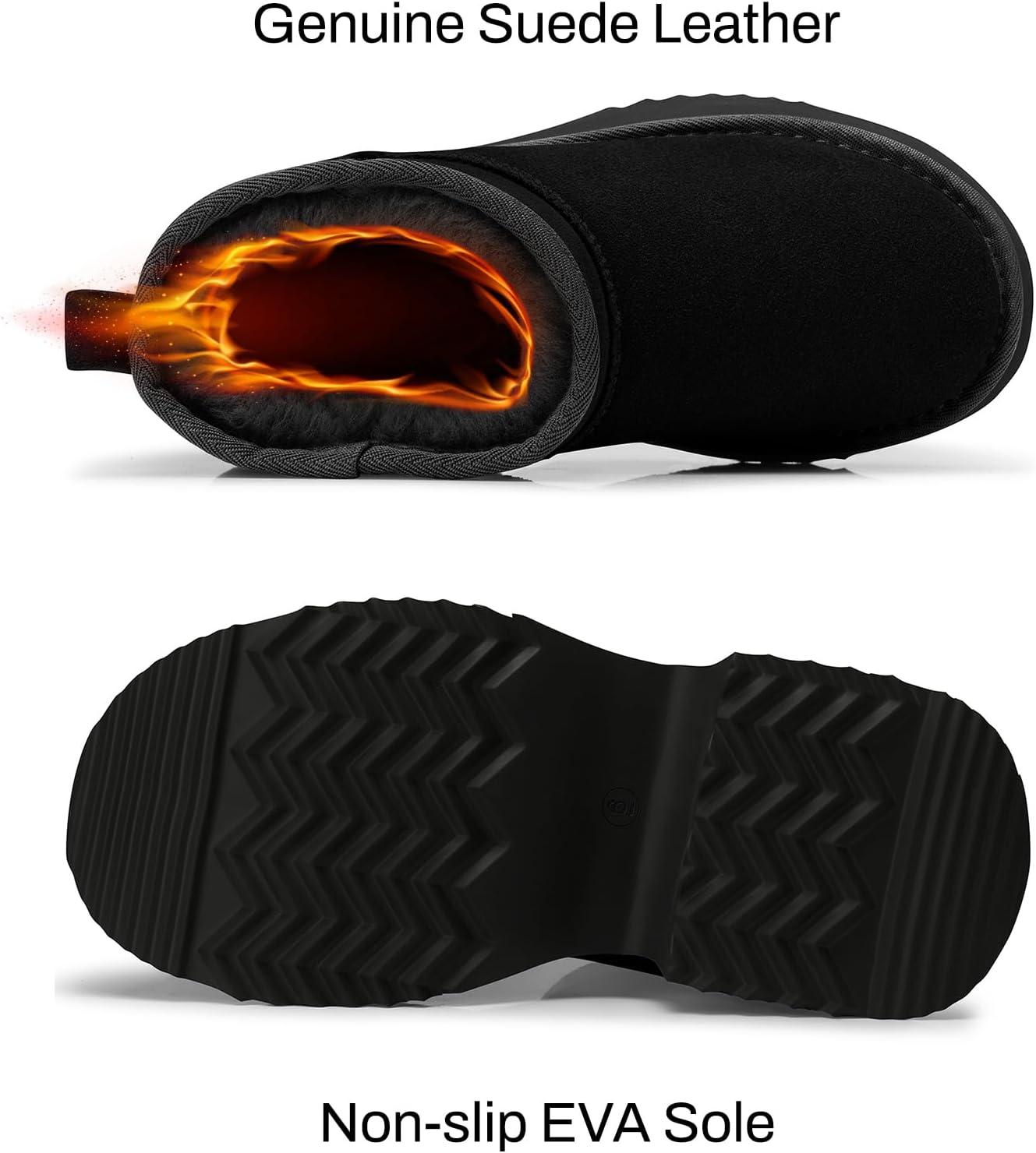 TEMOFON Womens Snow Mini Boots: Genuine Suede Leather Heights Platform Ankle Boots – Winter Warm Fur Lined Anti-Slip Fashion Booties(64-black)
